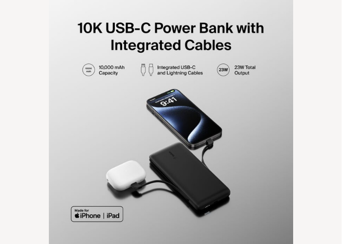 Portable battery power bank to charge your device everywhere you go.